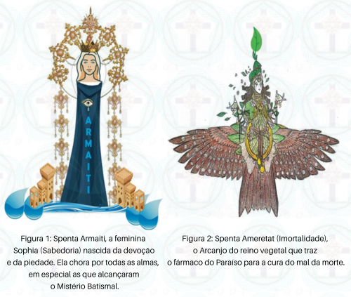 No Zoroastrianismo, Ahura-Mazda rodeia-se de sete grandes Arcanjos chamados Amesha-Spentas. O primeiro dos Amesha-Spentas, Spenta Armaiti, é conhecido por nós, gnósticos, como Sophia Piedosa (Pistis Sophia). Ela é intimamente ligada ao reino terrestre e a duas partes do fogo luminoso sagrado de Ahura-Mazda: a parte que entrou no corpo luminoso do planeta e está presente também no corpo humano como calor vital; e a que entrou nos vegetais manifestando-se na madeira e nos combustíveis vegetais que produzem chamas luminosas.