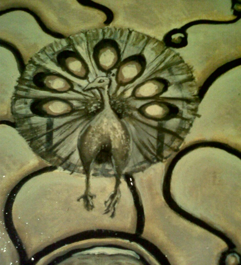 A umidade não é útil se ela se concentrar no alto e não descer para acalmar o calor da terra impulsionando assim o desenvolvimento dos brotos das plantas. Então, uma ave como o pavão, de hábitos terrestres, que não vive no ar das alturas, representa muito bem essa umidade concentrada perto do solo.
